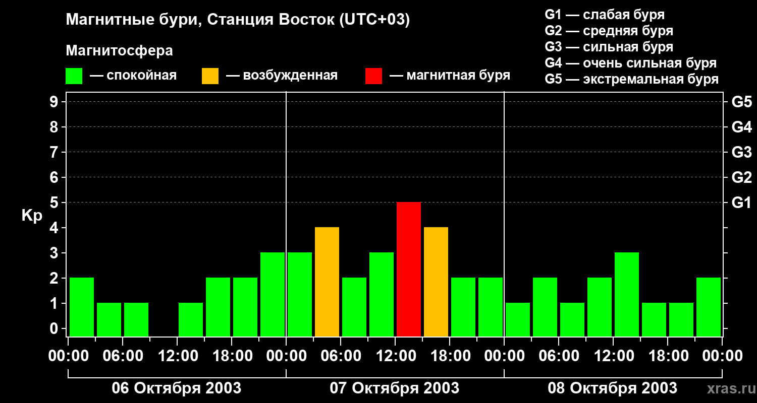 Магнитные бури локации Станция Восток — 8 октября 2003 года