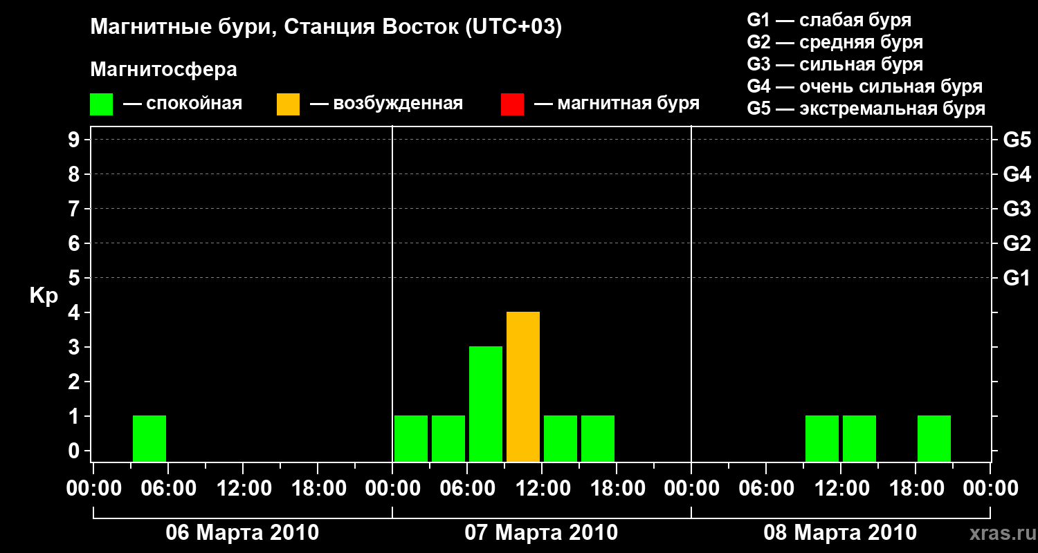 Магнитные бури локации Станция Восток — 8 марта 2010 года