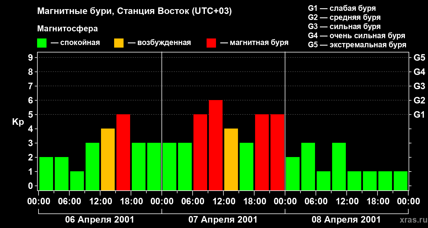 Магнитные бури локации Станция Восток — 8 апреля 2001 года