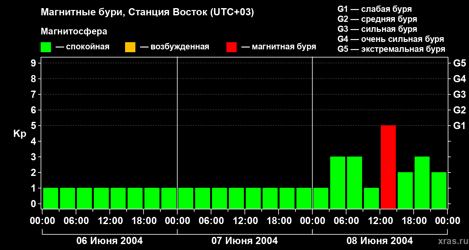 Магнитные бури локации Станция Восток — 8 июня 2004 года