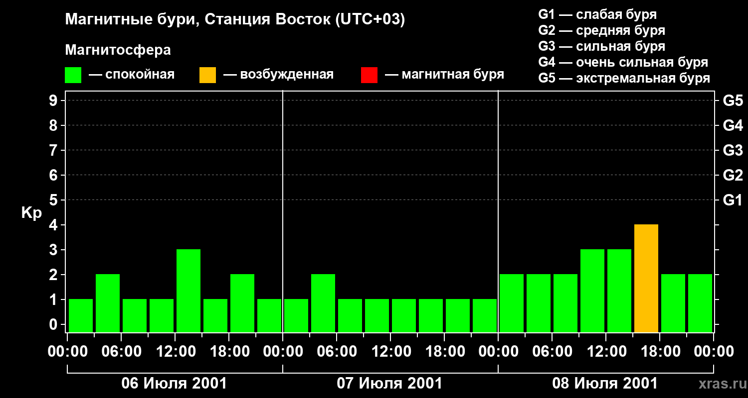 Магнитные бури локации Станция Восток — 8 июля 2001 года