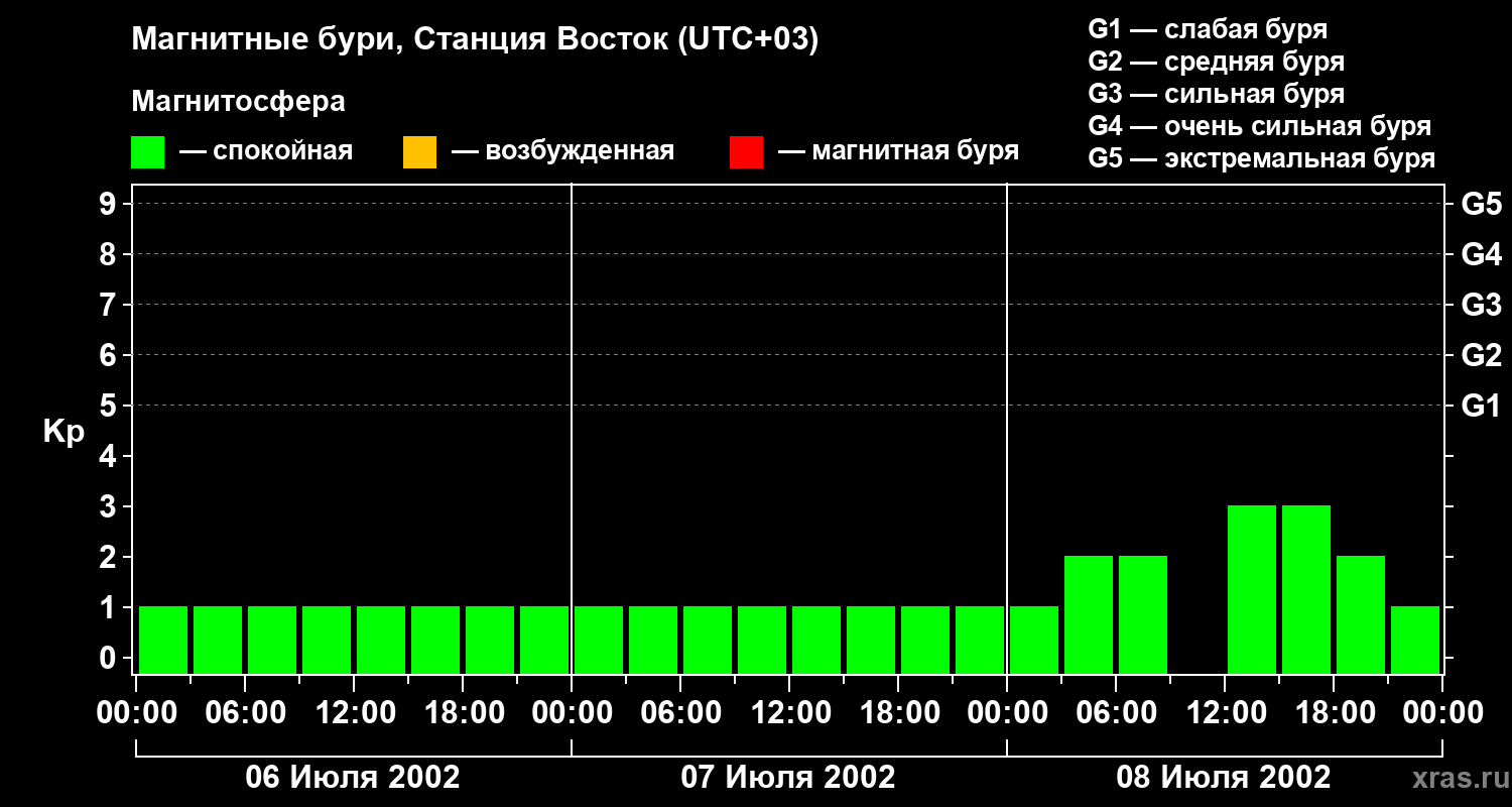 Магнитные бури локации Станция Восток — 8 июля 2002 года