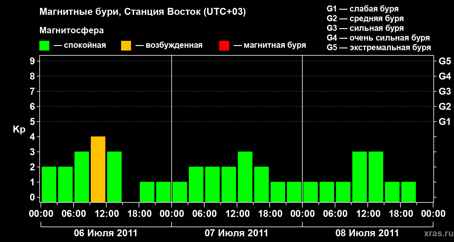 Магнитные бури локации Станция Восток — 8 июля 2011 года