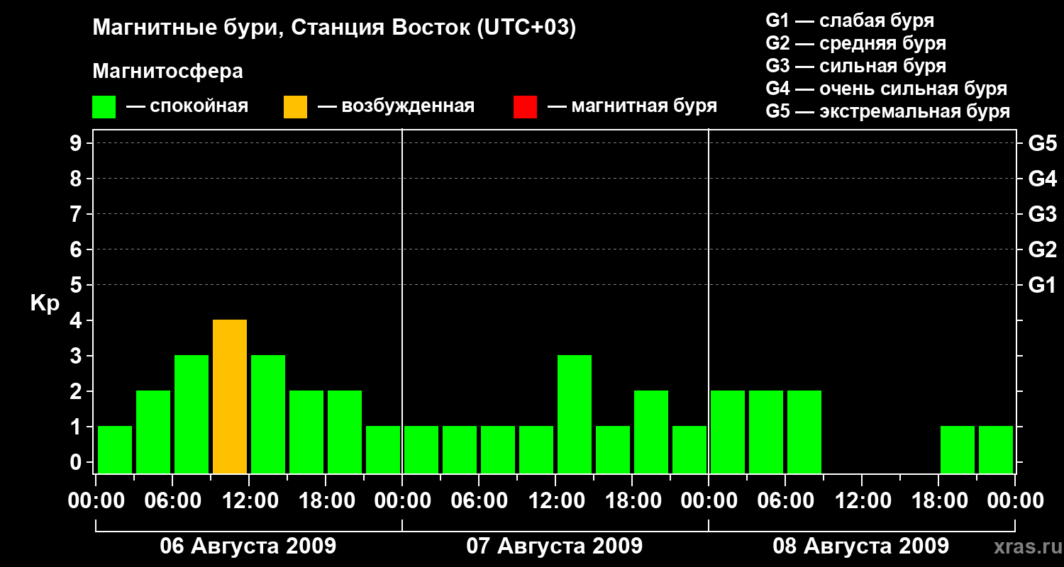 Магнитные бури локации Станция Восток — 8 августа 2009 года