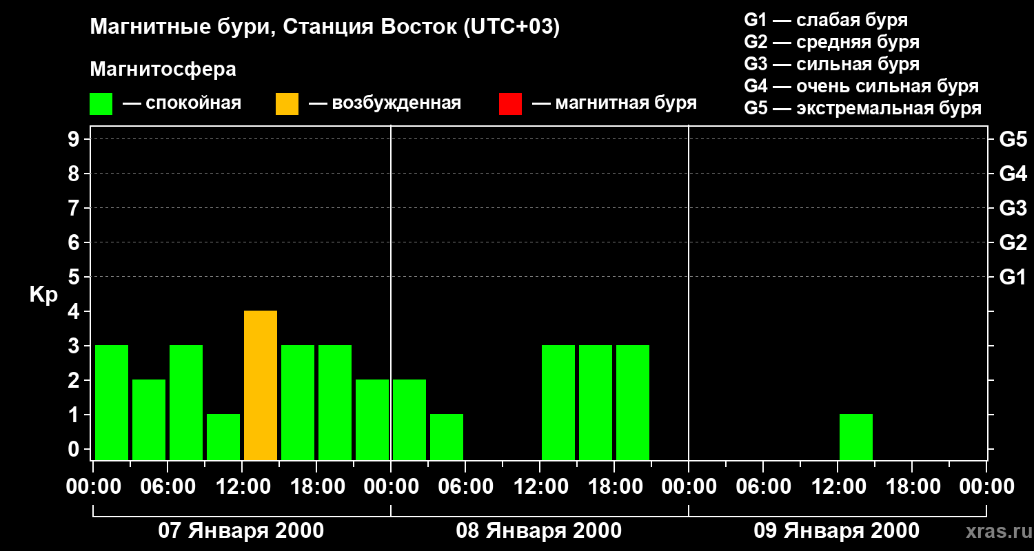 Магнитные бури локации Станция Восток — 9 января 2000 года