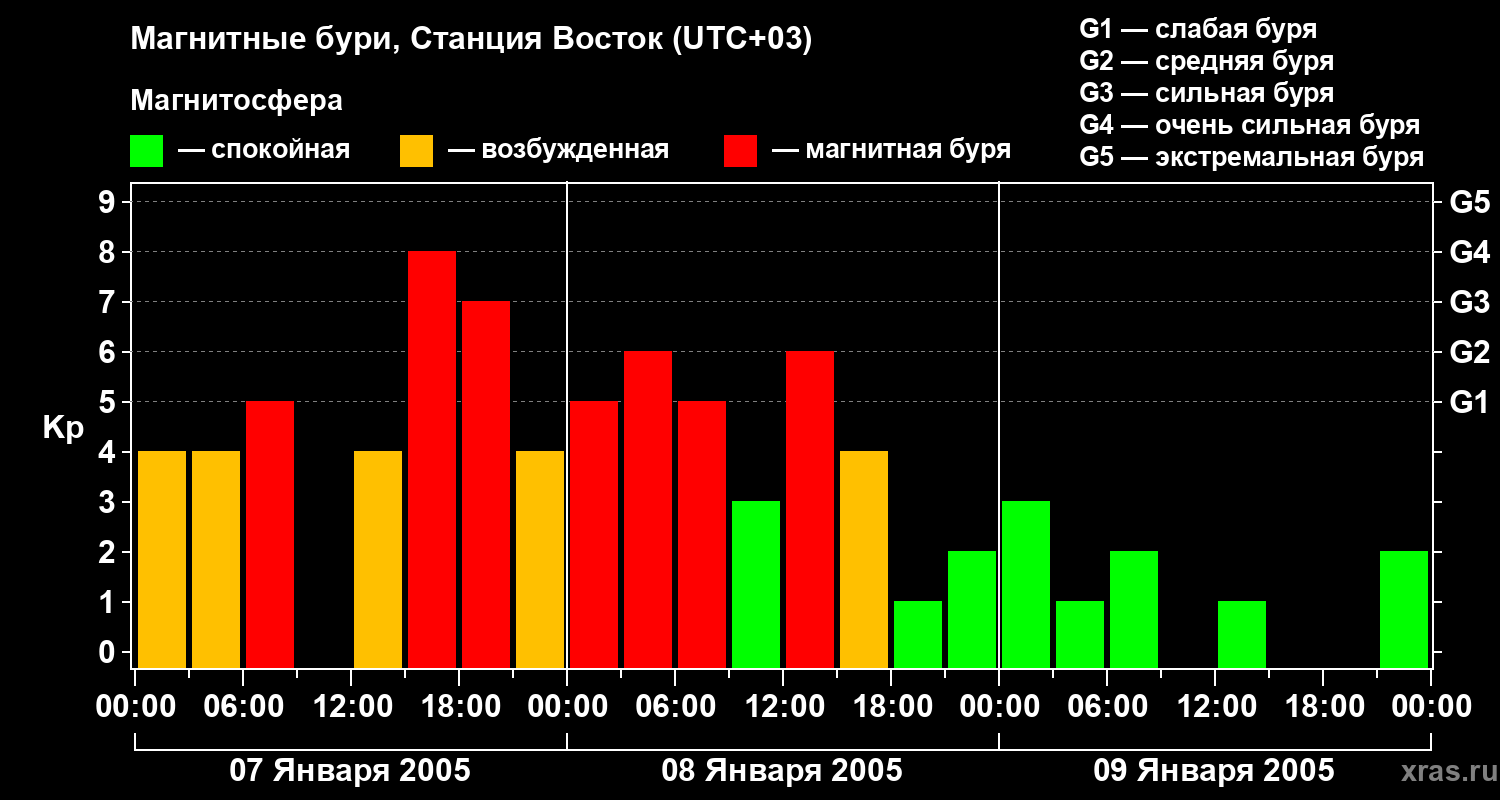 Магнитные бури локации Станция Восток — 9 января 2005 года