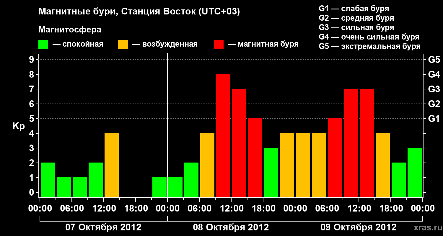 Магнитные бури локации Станция Восток — 9 октября 2012 года