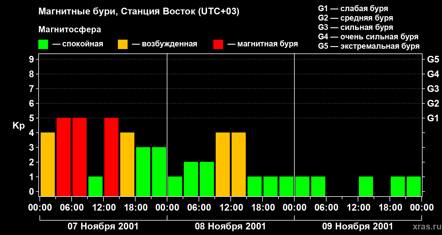 Магнитные бури локации Станция Восток — 9 ноября 2001 года