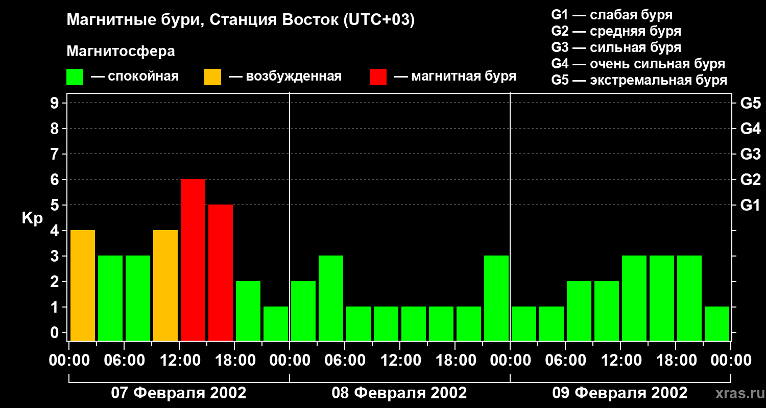 Магнитные бури локации Станция Восток — 9 февраля 2002 года