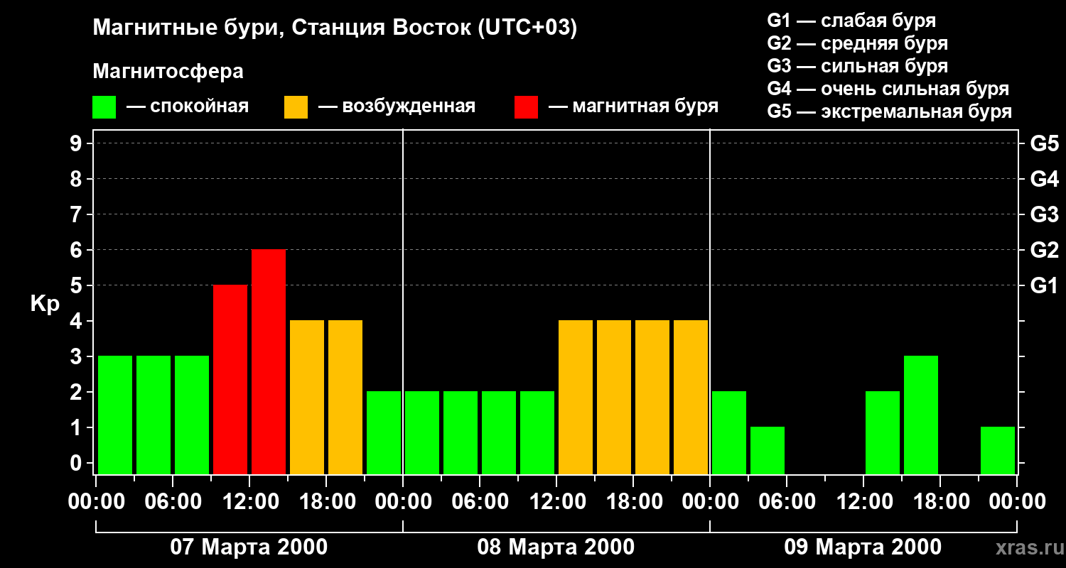 Магнитные бури локации Станция Восток — 9 марта 2000 года