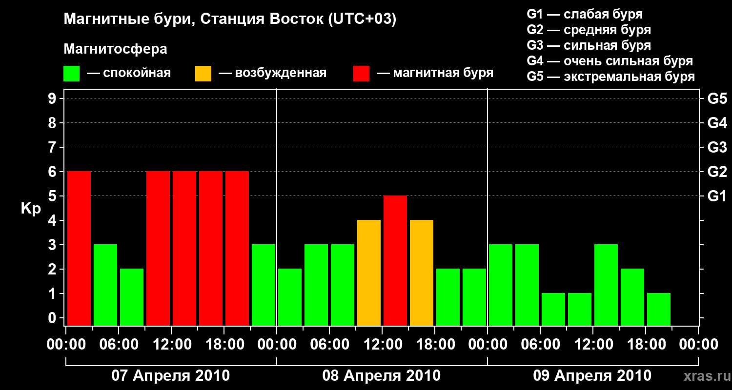 Магнитные бури локации Станция Восток — 9 апреля 2010 года