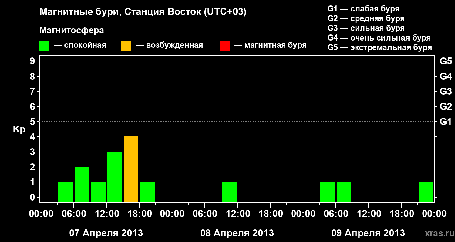 Магнитные бури локации Станция Восток — 9 апреля 2013 года