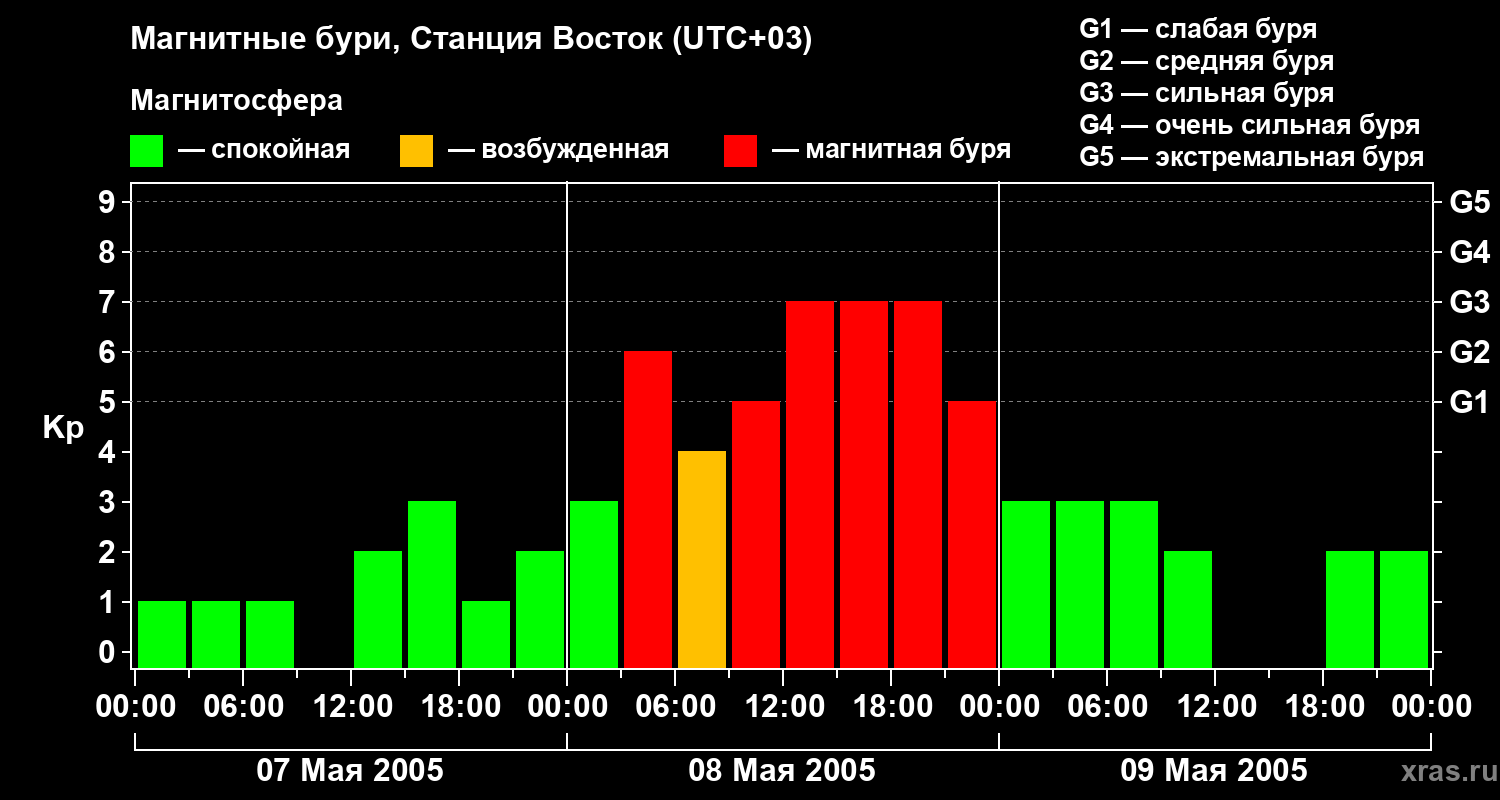 Магнитные бури локации Станция Восток — 9 мая 2005 года