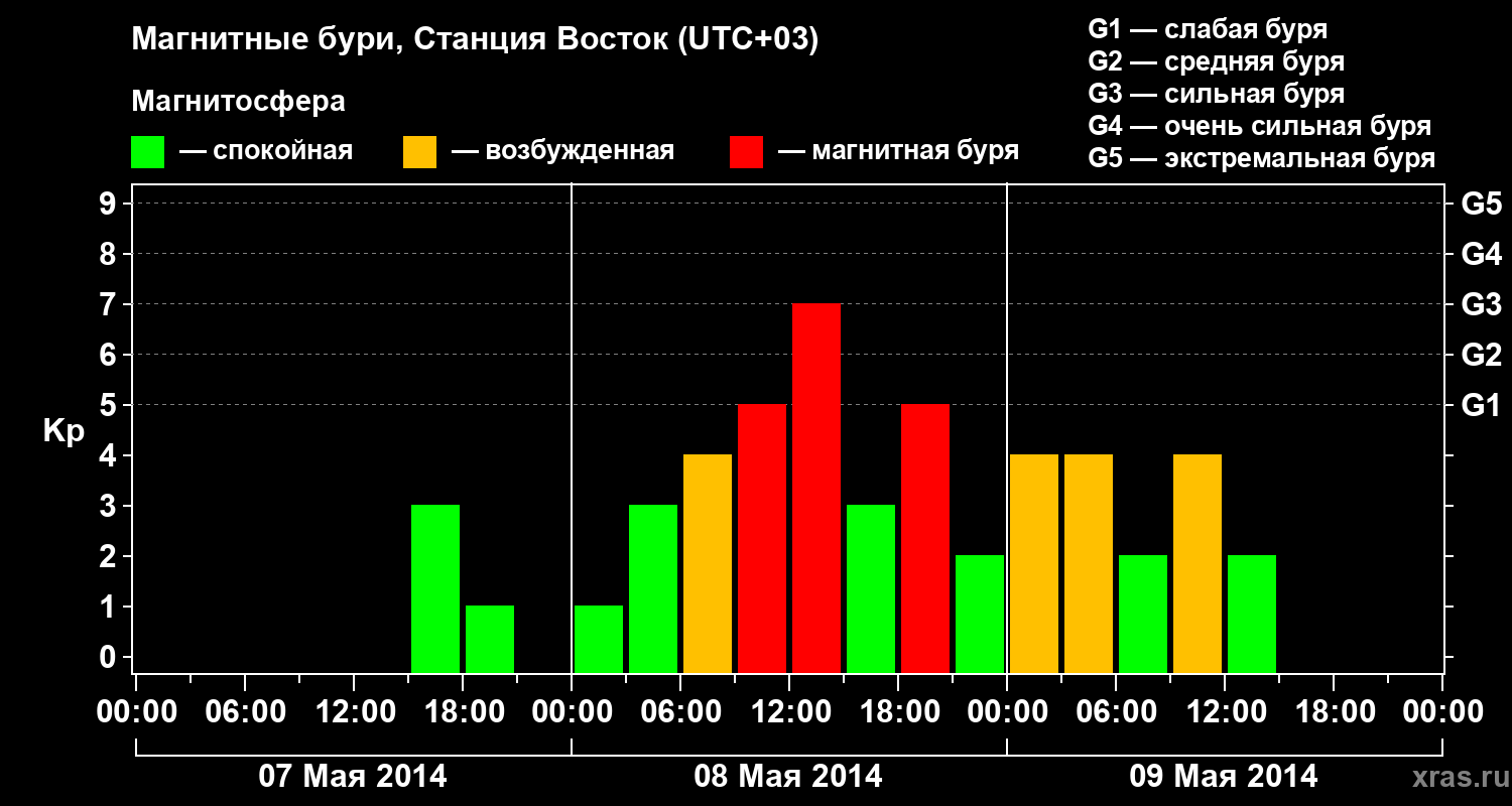 Магнитные бури локации Станция Восток — 9 мая 2014 года