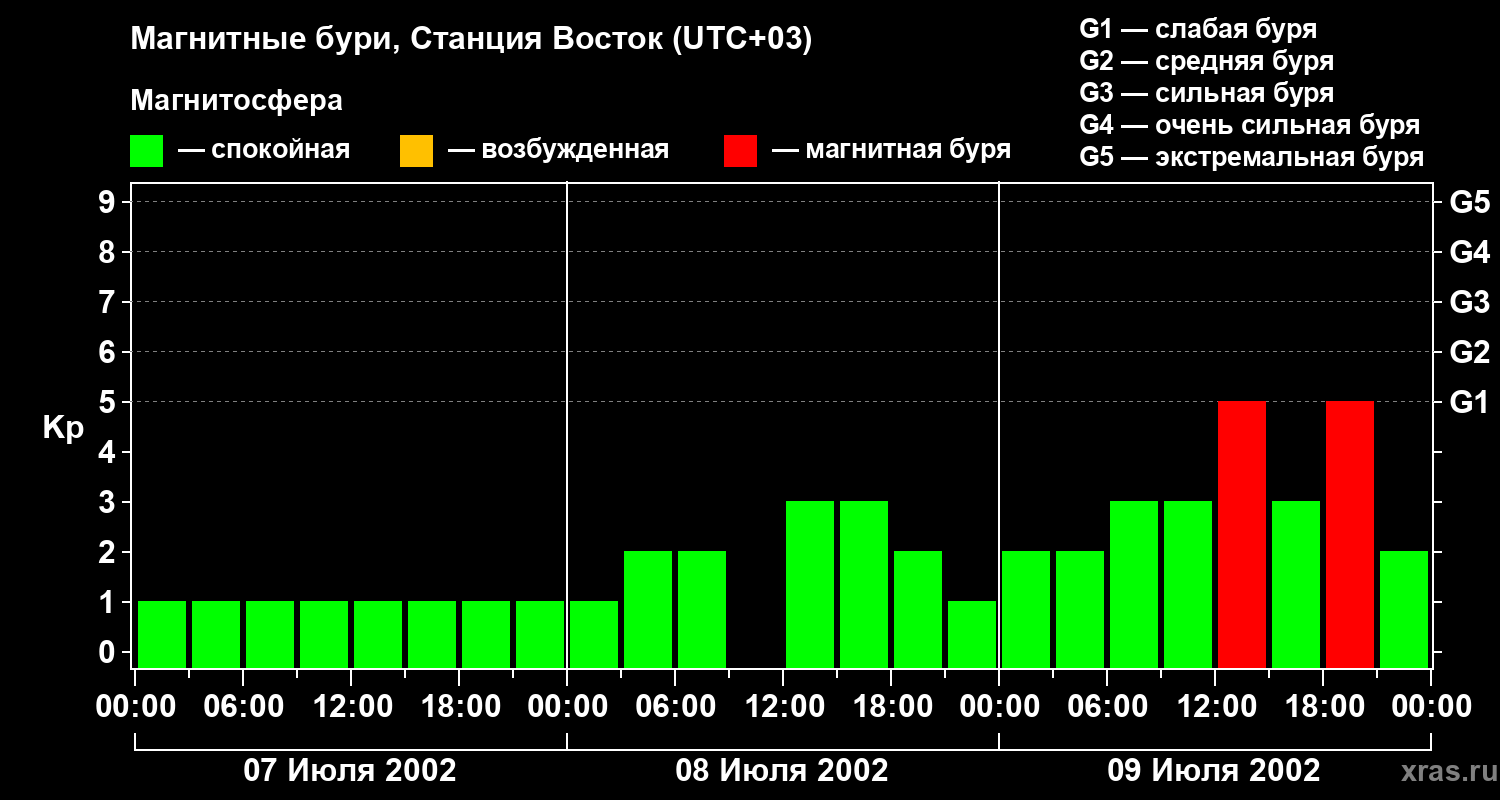 Магнитные бури локации Станция Восток — 9 июля 2002 года