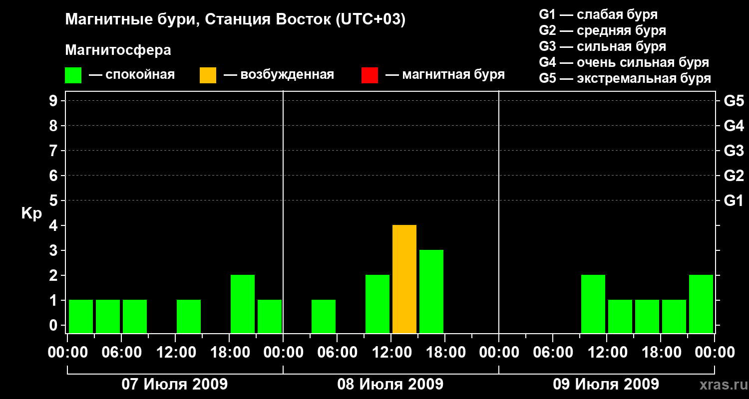 Магнитные бури локации Станция Восток — 9 июля 2009 года