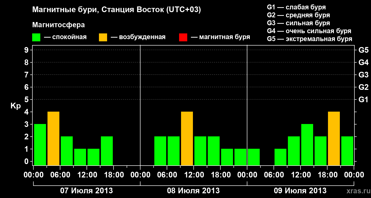 Магнитные бури локации Станция Восток — 9 июля 2013 года