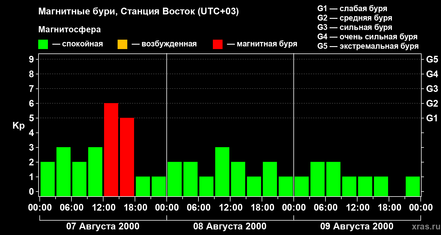 Магнитные бури локации Станция Восток — 9 августа 2000 года