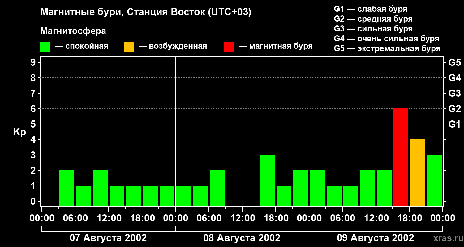 Магнитные бури локации Станция Восток — 9 августа 2002 года