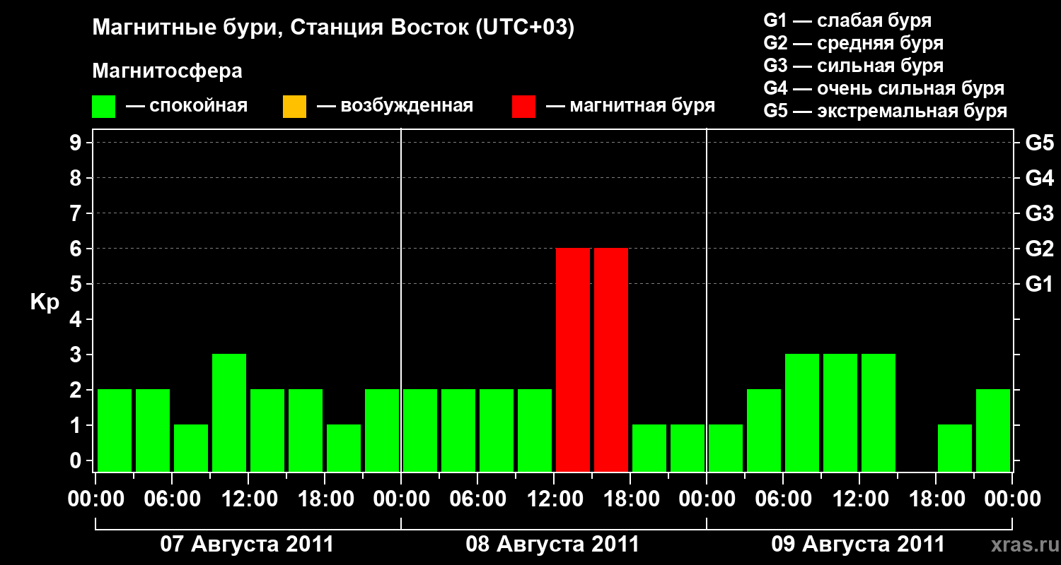 Магнитные бури локации Станция Восток — 9 августа 2011 года
