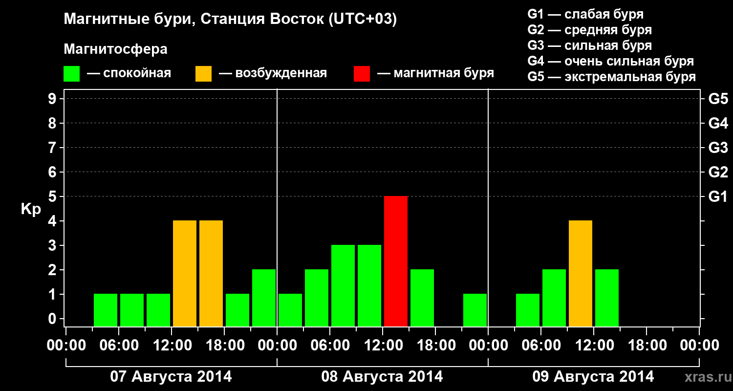 Магнитные бури локации Станция Восток — 9 августа 2014 года
