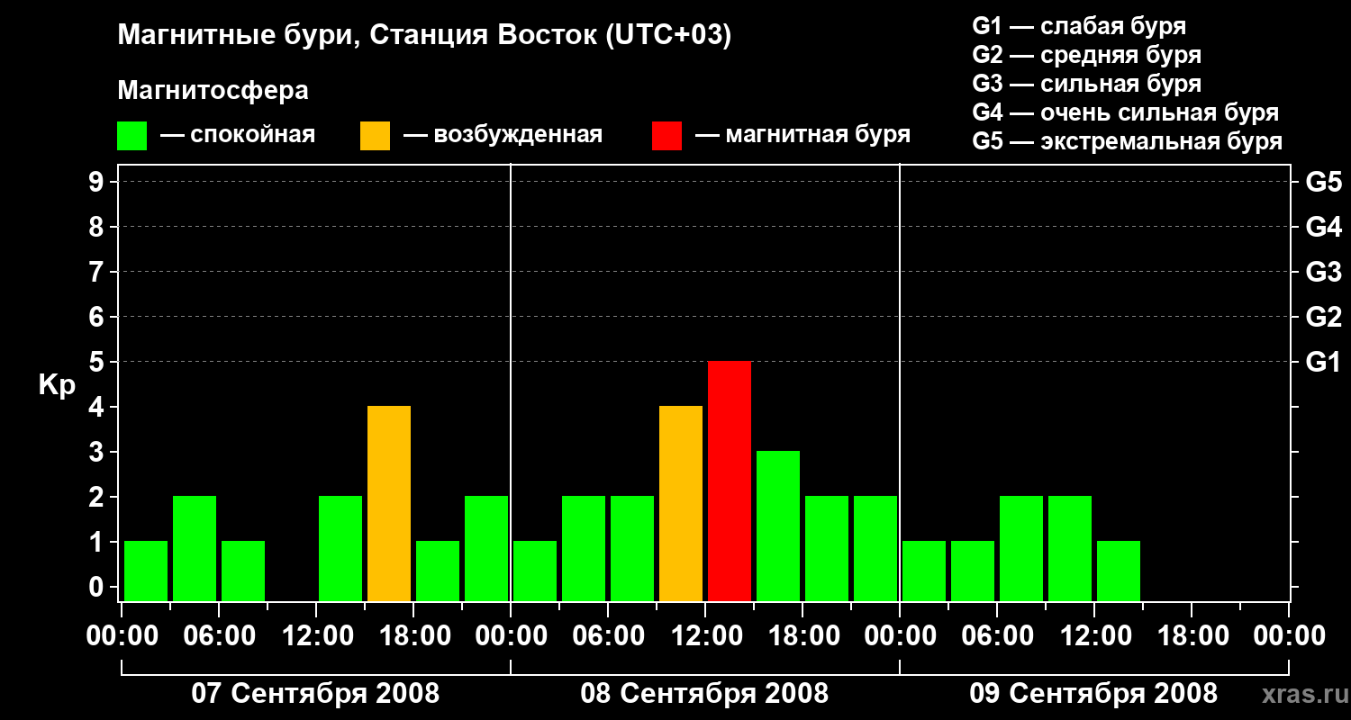 Магнитные бури локации Станция Восток в сентябре 2008 года