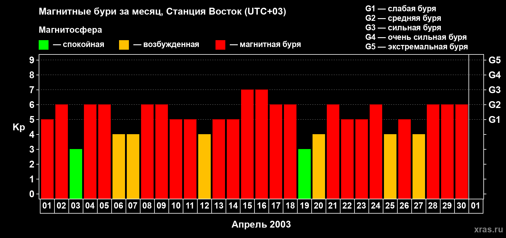 Список магнитных бурь в апреле 2003 года