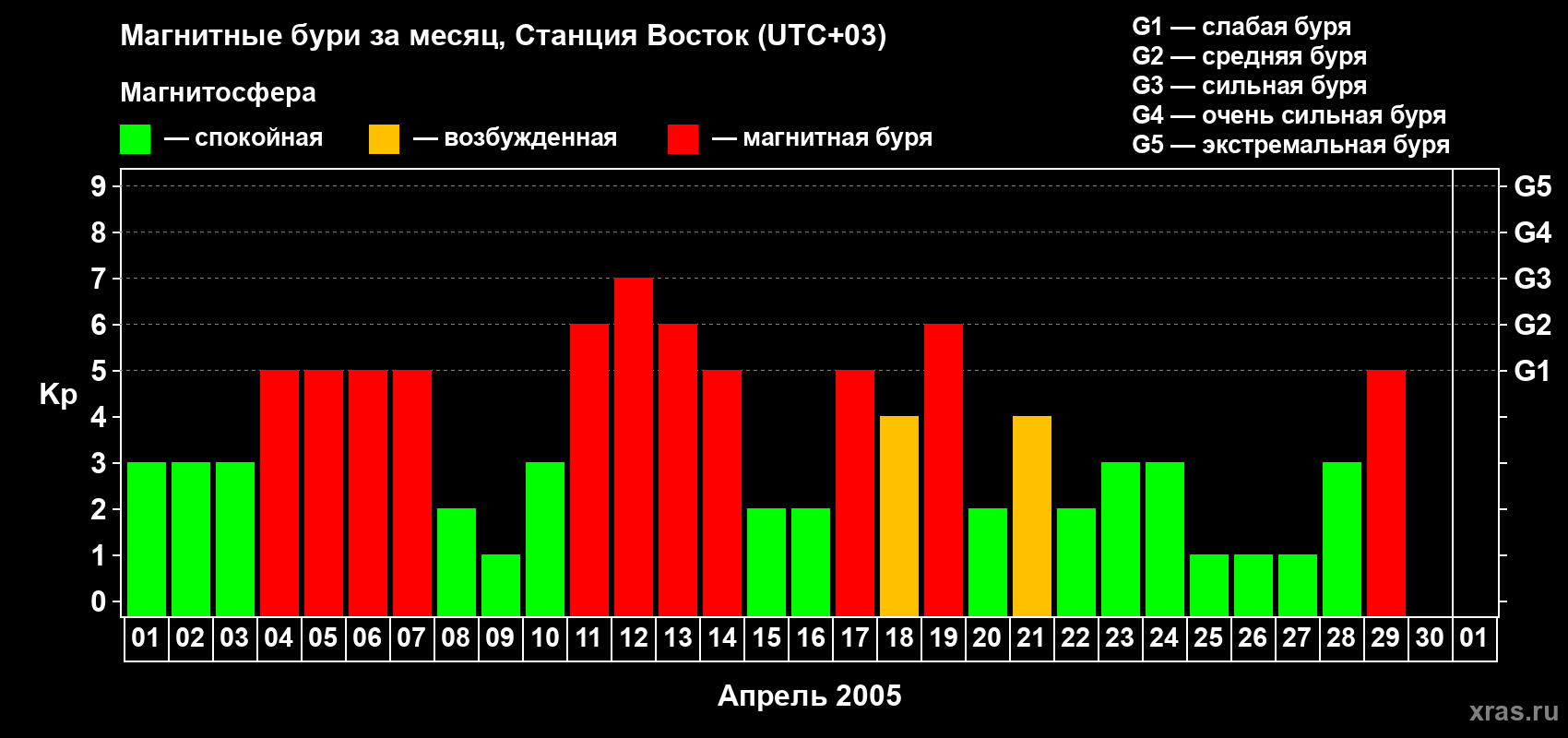 04 апреля 2005 года — Магнитная буря уровня G1