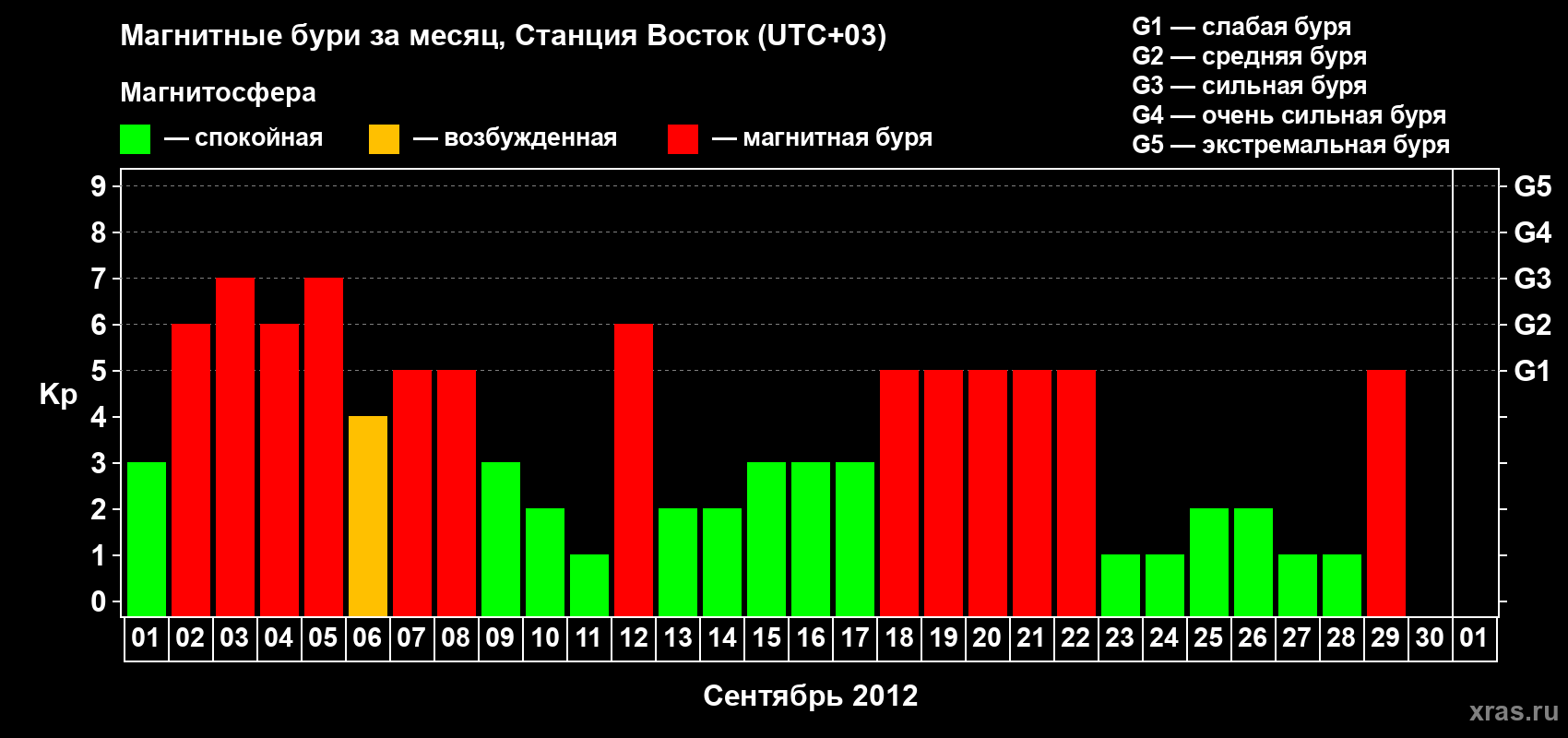 Список магнитных бурь в сентябре 2012 года