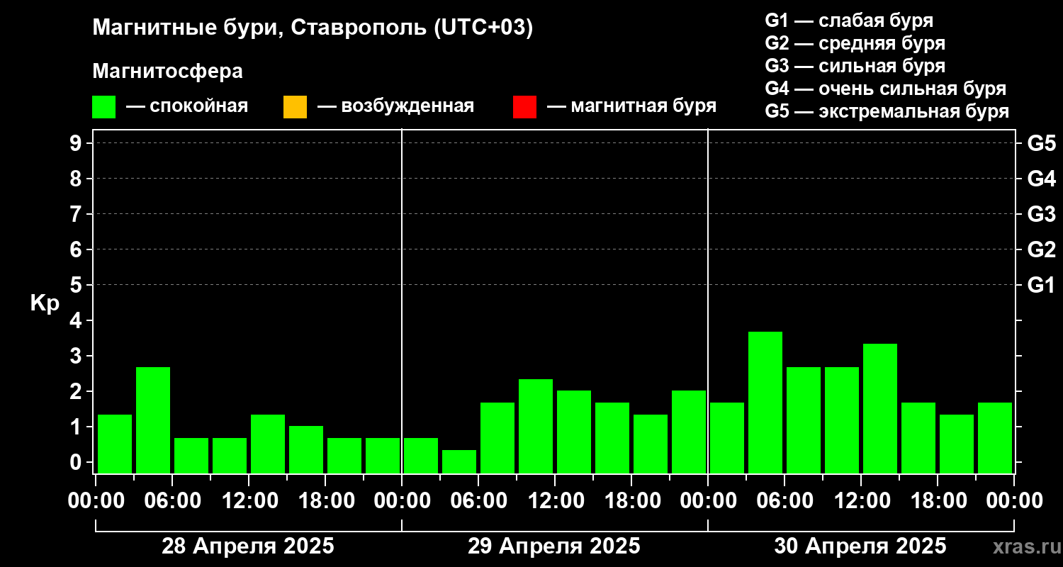 Магнитные бури в Ставрополе 30 апреля 2025 года