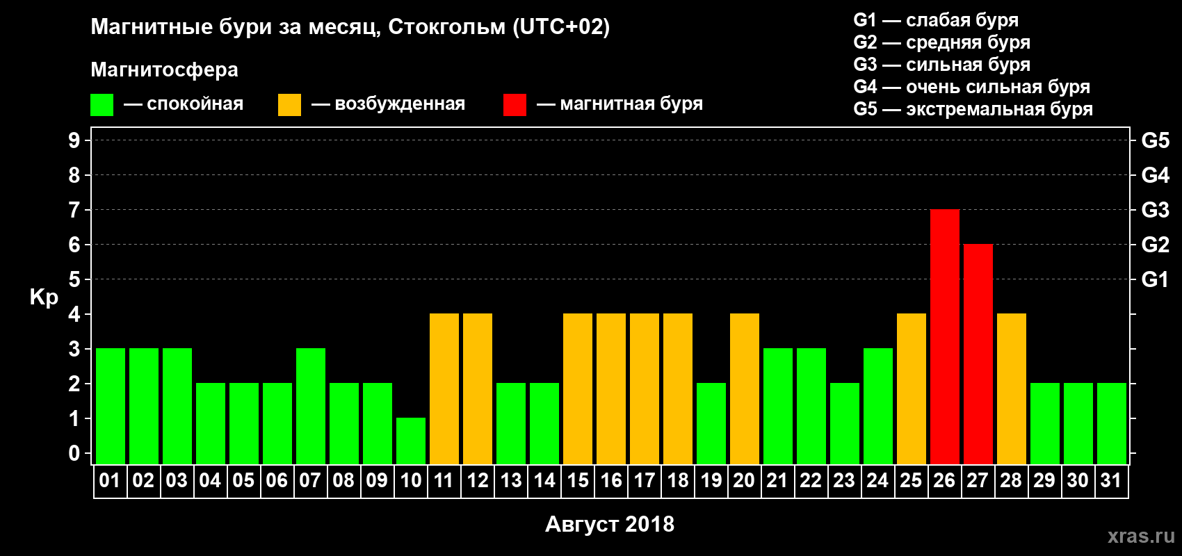 Магнитные бури в Стокгольме 1 августа 2018 года