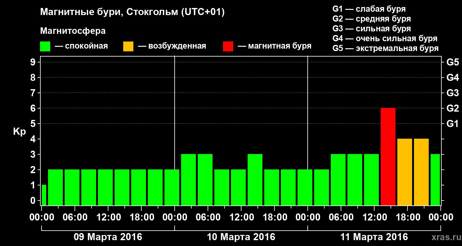 Магнитные бури в Стокгольме — 11 марта 2016 года