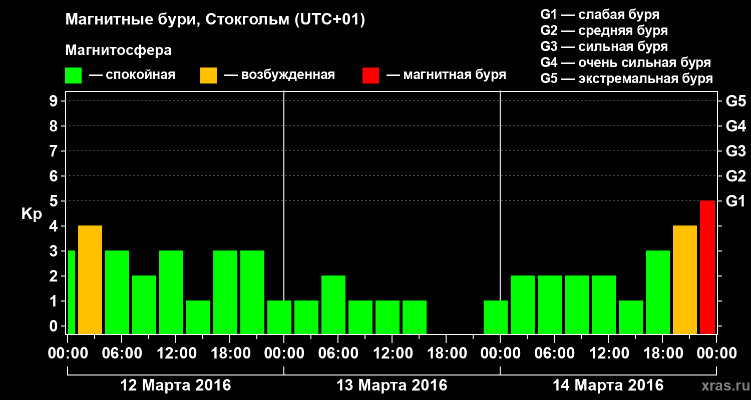 Магнитные бури в Стокгольме — 14 марта 2016 года