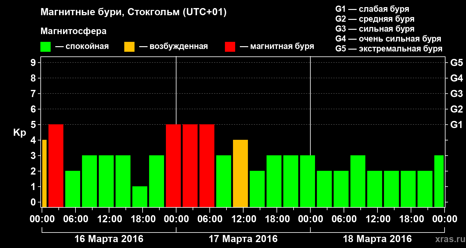 Магнитные бури в Стокгольме — 18 марта 2016 года