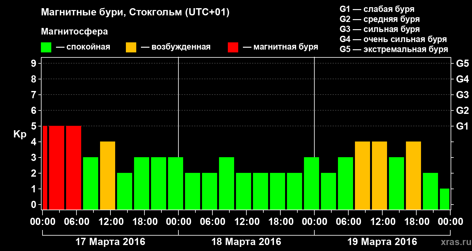 Магнитные бури в Стокгольме — 19 марта 2016 года