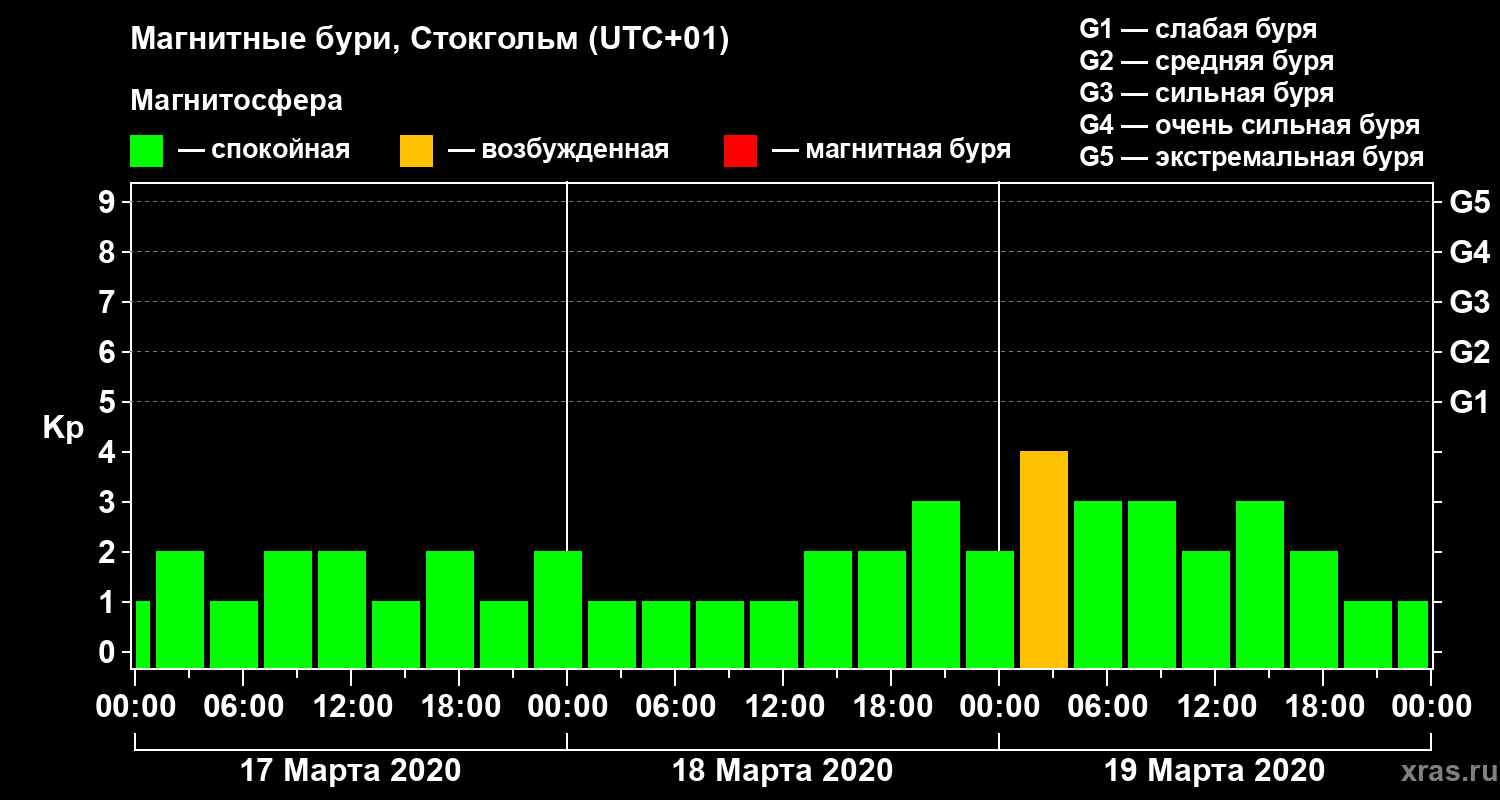 Магнитные бури в Стокгольме — 19 марта 2020 года