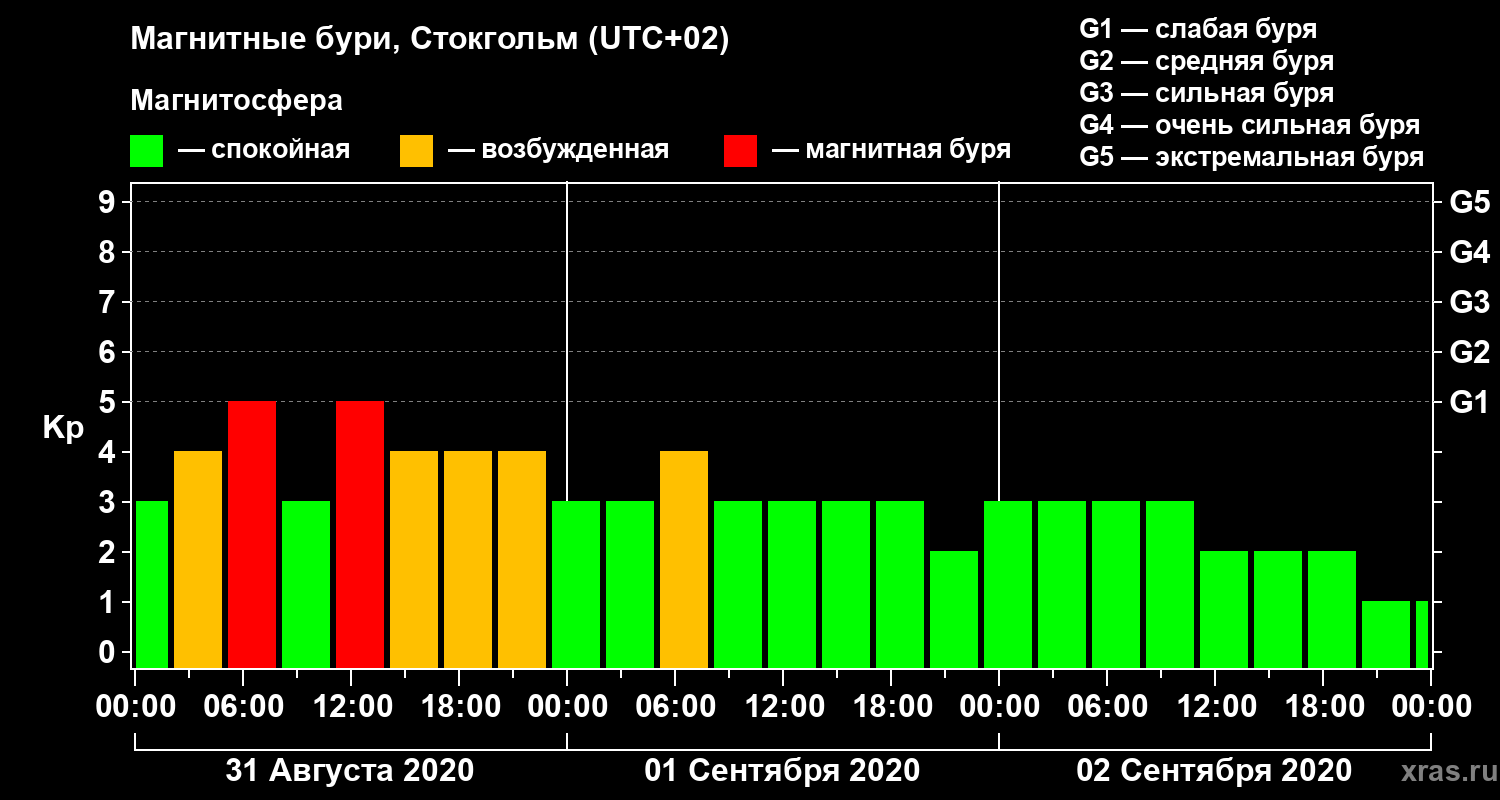 Магнитные бури в Стокгольме 2 сентября 2020 года
