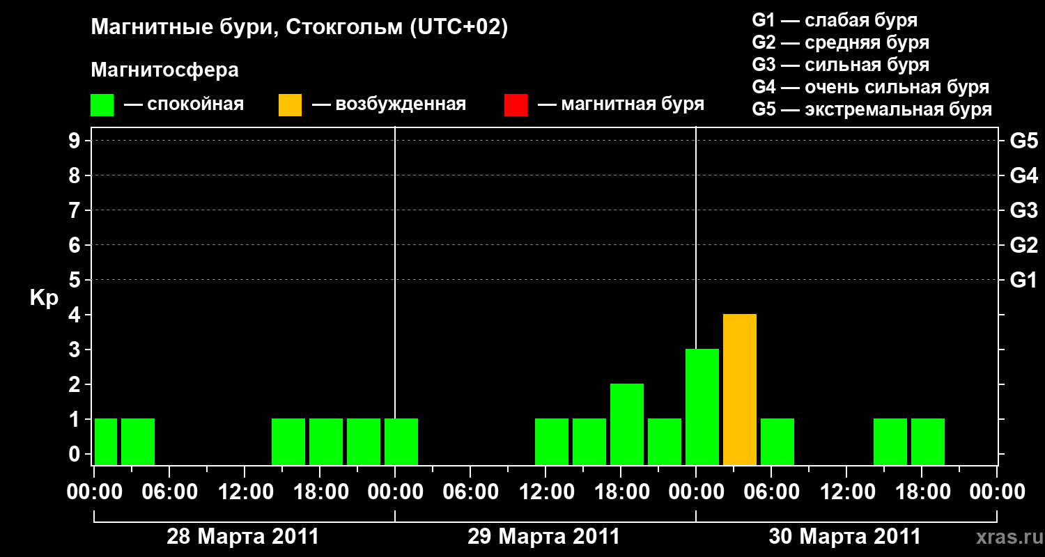 Магнитные бури в Стокгольме — 30 марта 2011 года