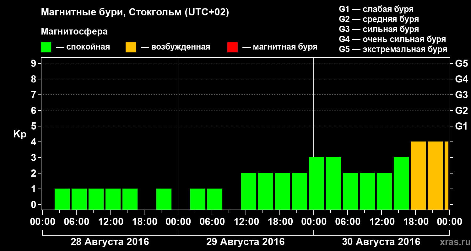 Магнитные бури в Стокгольме — 30 августа 2016 года
