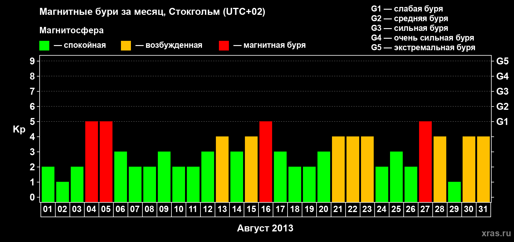 Магнитные бури в Стокгольме — 31 августа 2013 года