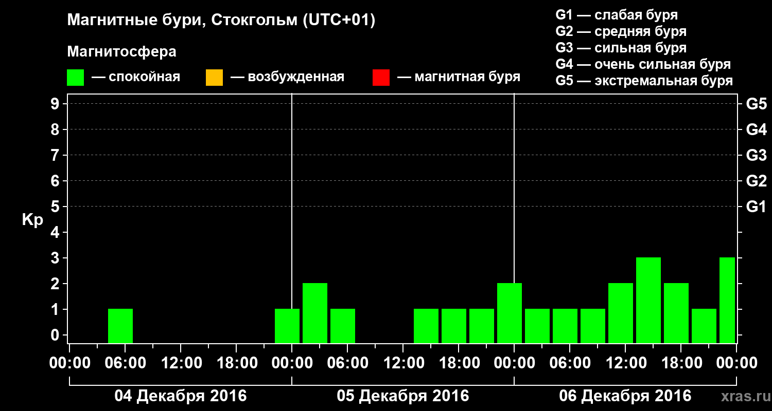 Магнитные бури в Стокгольме 6 декабря 2016 года