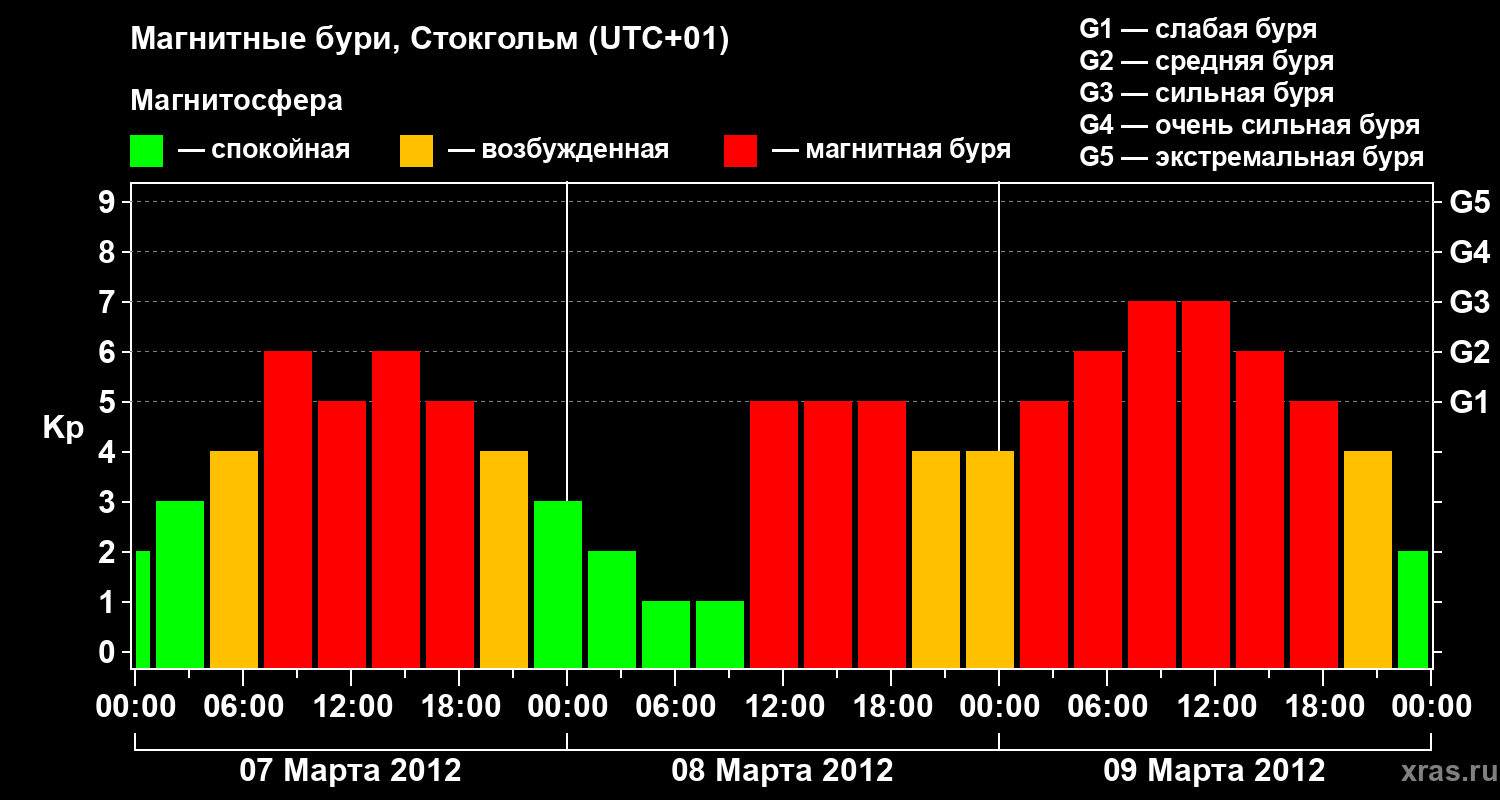 Магнитные бури в Стокгольме 9 марта 2012 года