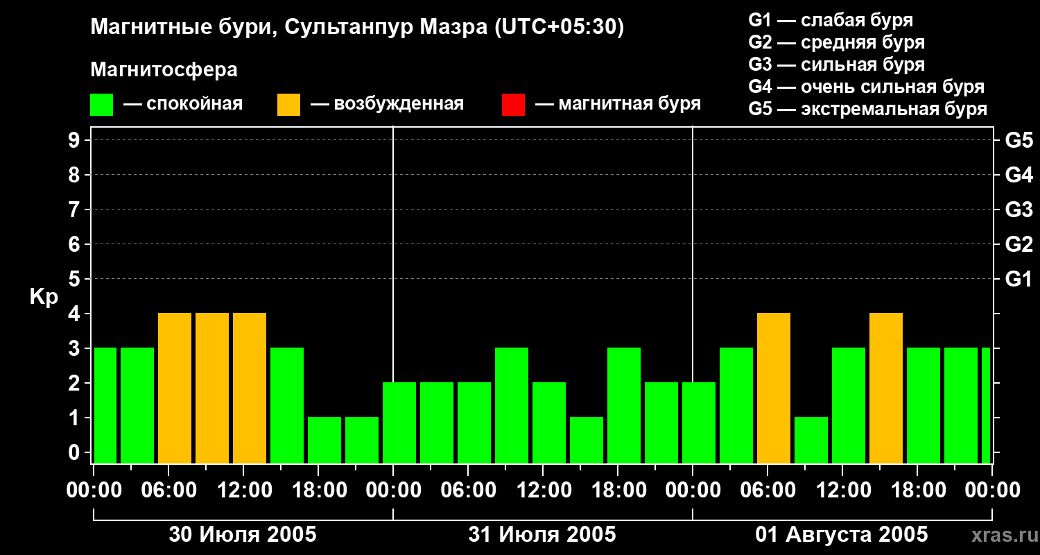 Магнитные бури в Сультанпур Мазре — 1 августа 2005 года