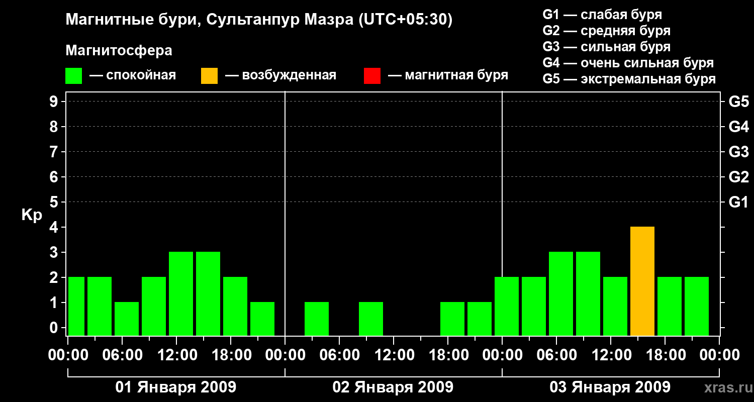 Магнитные бури в Сультанпур Мазре — 3 января 2009 года