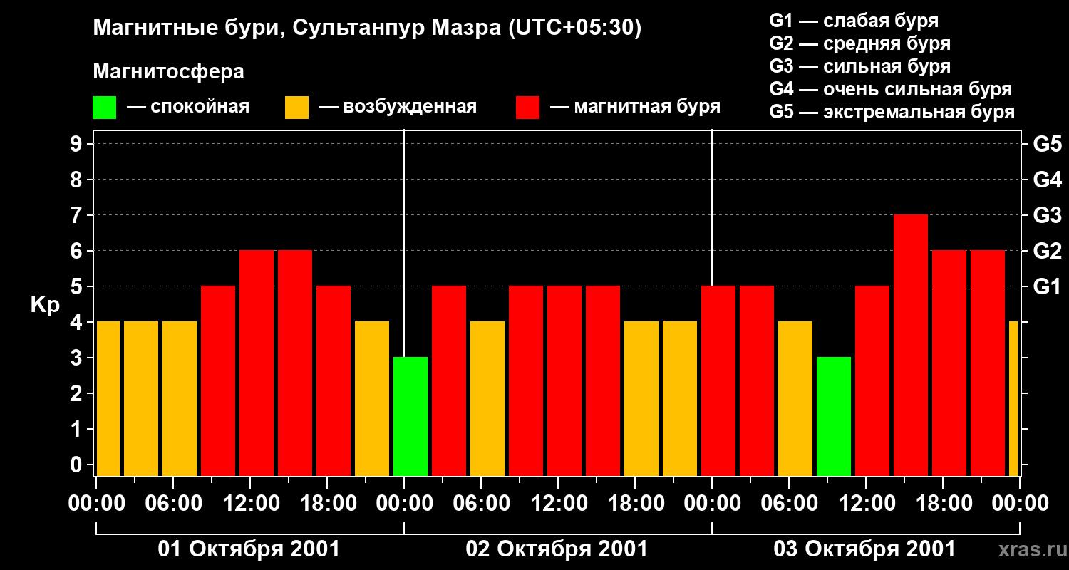 Магнитные бури в Сультанпур Мазре 3 октября 2001 года