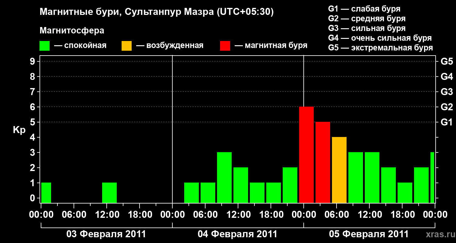 Магнитные бури в Сультанпур Мазре 5 февраля 2011 года