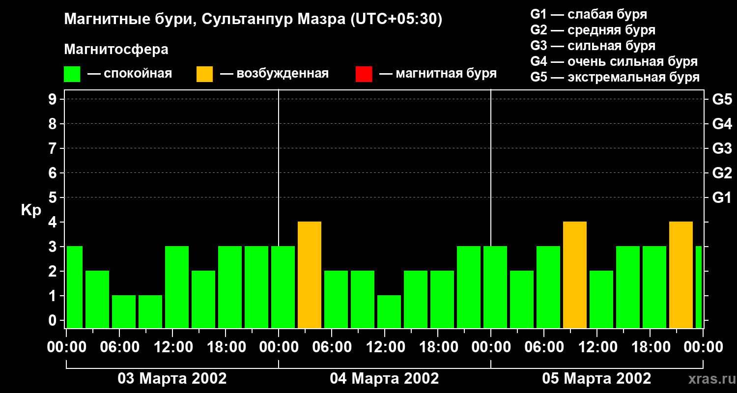Магнитные бури в Сультанпур Мазре 5 марта 2002 года