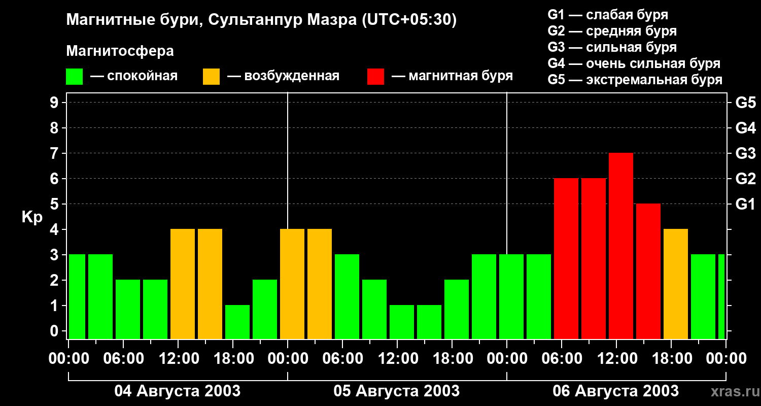 Магнитные бури в Сультанпур Мазре 6 августа 2003 года