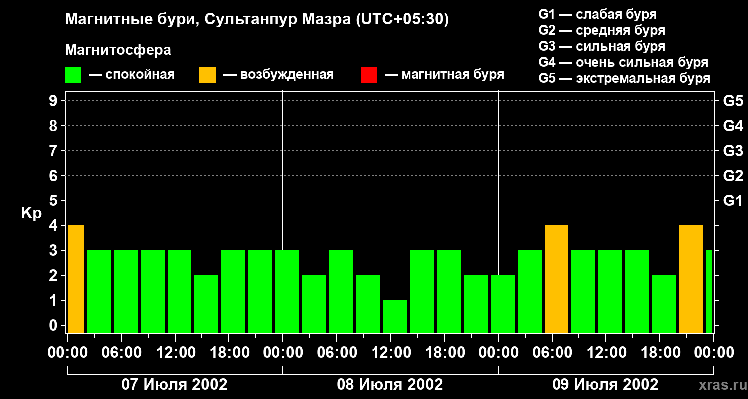 Магнитные бури в Сультанпур Мазре — 9 июля 2002 года
