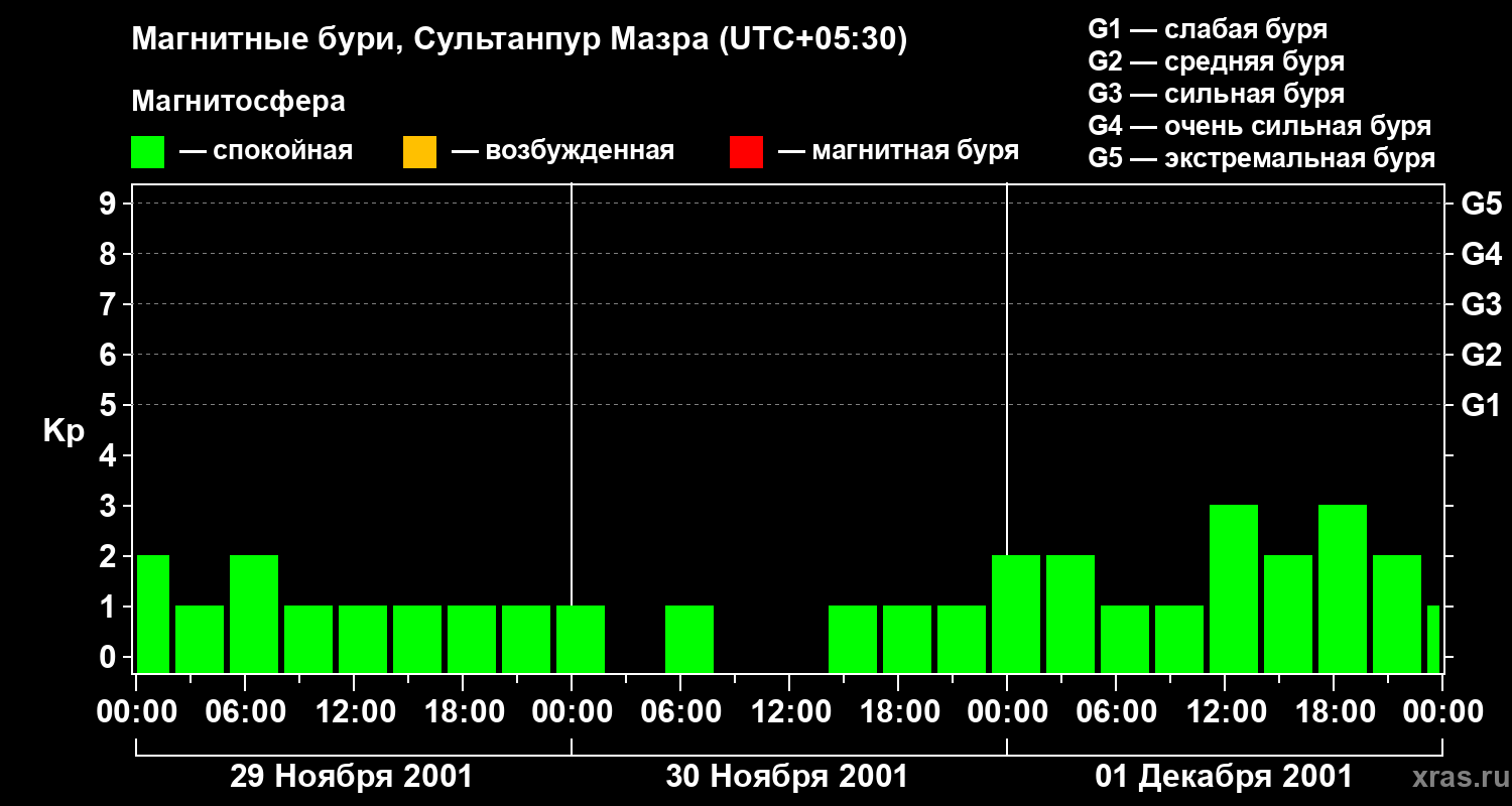 Магнитные бури в Сультанпур Мазре 1 декабря 2001 года